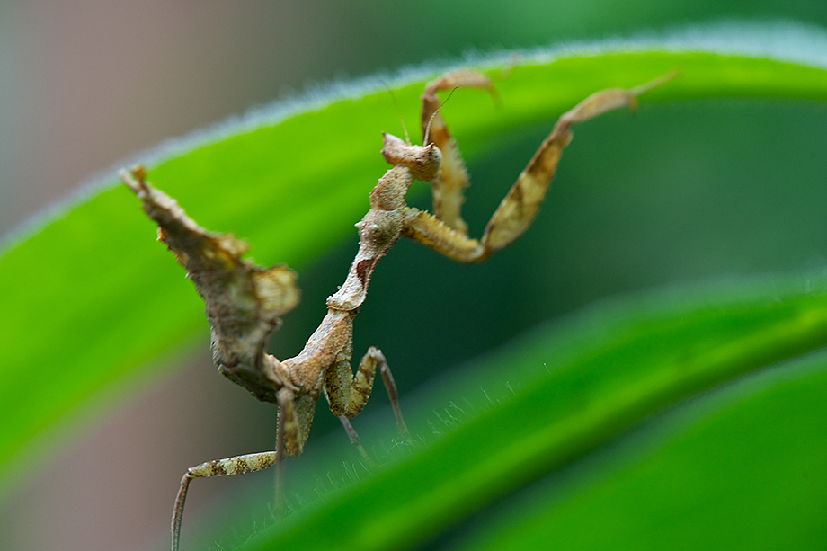 I thought that this rather interesting insect warranted three angles. It’s called a dead leaf mantis. There are many species of dead leaf mantises and as the name suggests, they mimic dead leaves. Like yesterday’s bird, this guy was also photographed in the cloud forest of Ecuador. Unlike the bird, I don’t have a dead leaf mantis call to share.