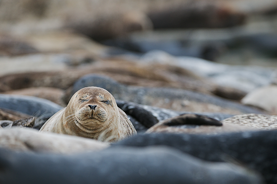 Here’s another harbor seal from Children’s Pool Beach in La Jolla, California. A couple of weeks ago I mentioned that an ongoing legal battle has been stalled in the local courts between seal advocates on the one hand and locals on the other who want to return the beach to human bathers. The story goes back to 1931 when a local philanthropist built a sea wall to protect the beach from dangerous surf and dedicated it to the city under the condition that “said lands shall be devoted exclusively to public park, bathing pool for children, parkway, highway, playground, and recreational purposes.” I guess they didn’t count on the seals liking it so much. My vote clearly goes to the seals (and it seems that most of the locals do prefer the seals too, as it has become a popular tourist attraction).