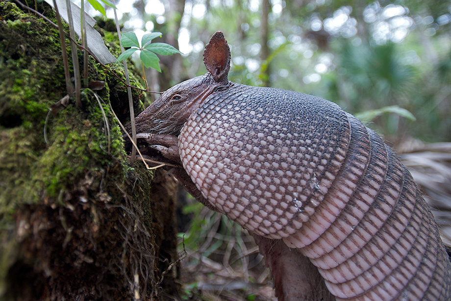 This nine-banded armadillo on Merritt Island in Florida was searching everywhere. For what, I don’t know, but it must have been important because he was quite frantic about his search. He even looked inside this moss-covered log for that thing he wanted so much. I didn’t stick around long enough to see if he ever did find what he was looking for. Nikon D700 with Nikkor 17-35mm lens (at 19mm) ISO 800, f/3.2 at 1/640th of a second