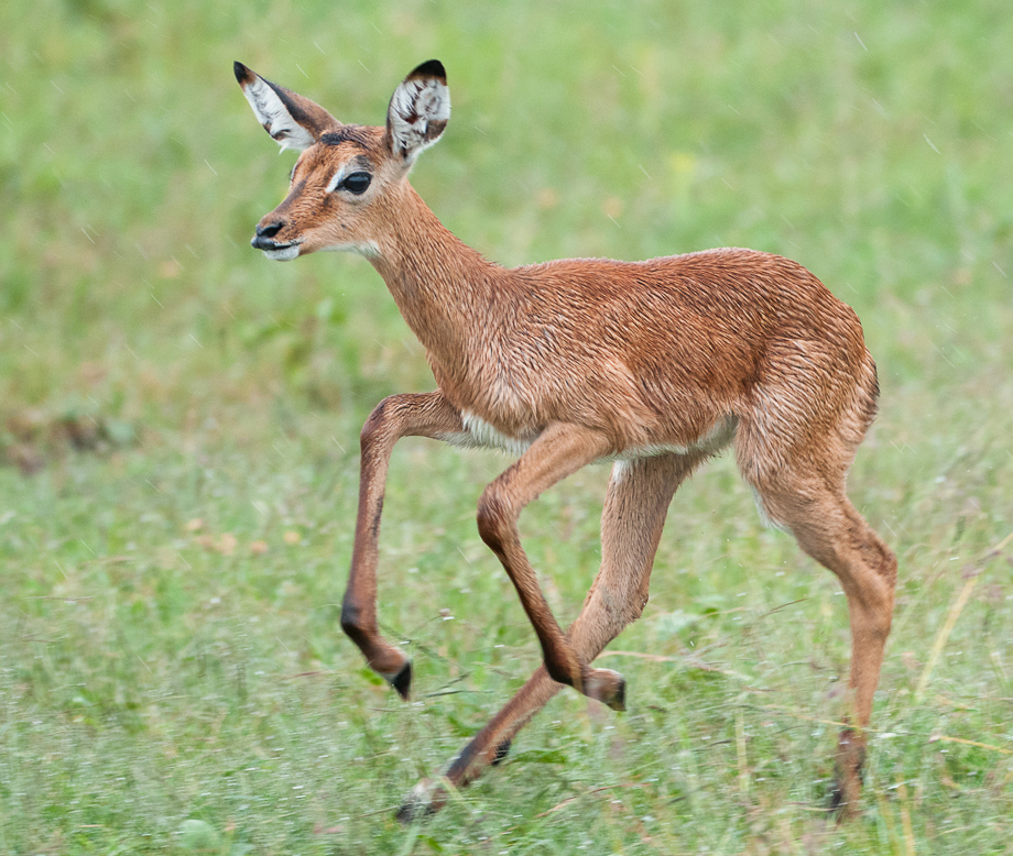 I had a request for an equine tonight. A baby impala doesn’t exactly fit the bill, but it is a hoofed quadruped just like a horse so close enough. We came across this little one while on safari in Kenya. She was temporarily separated from her mother, but after a bit of romping around in the rain, found her way back home. Nikon D300 with Nikkor 200-400mm lens (at 220mm) ISO 800, f/4 at 1/400th of a second
