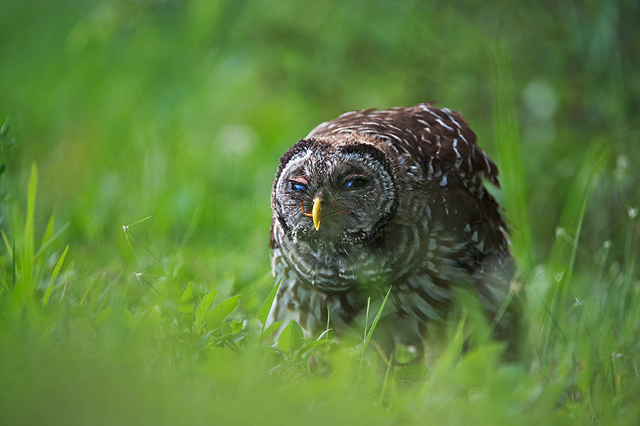 This barred owl was enjoying a bit of an appetizer course for breakfast. The unfortunate prey was an eastern lubber grasshopper. You can see the one orange leg still dangling from the owl’s beak. Nikon D800 with Nikkor 200-400mm lens (at 300mm) ISO 800, f/4 at 1//1000th of a second