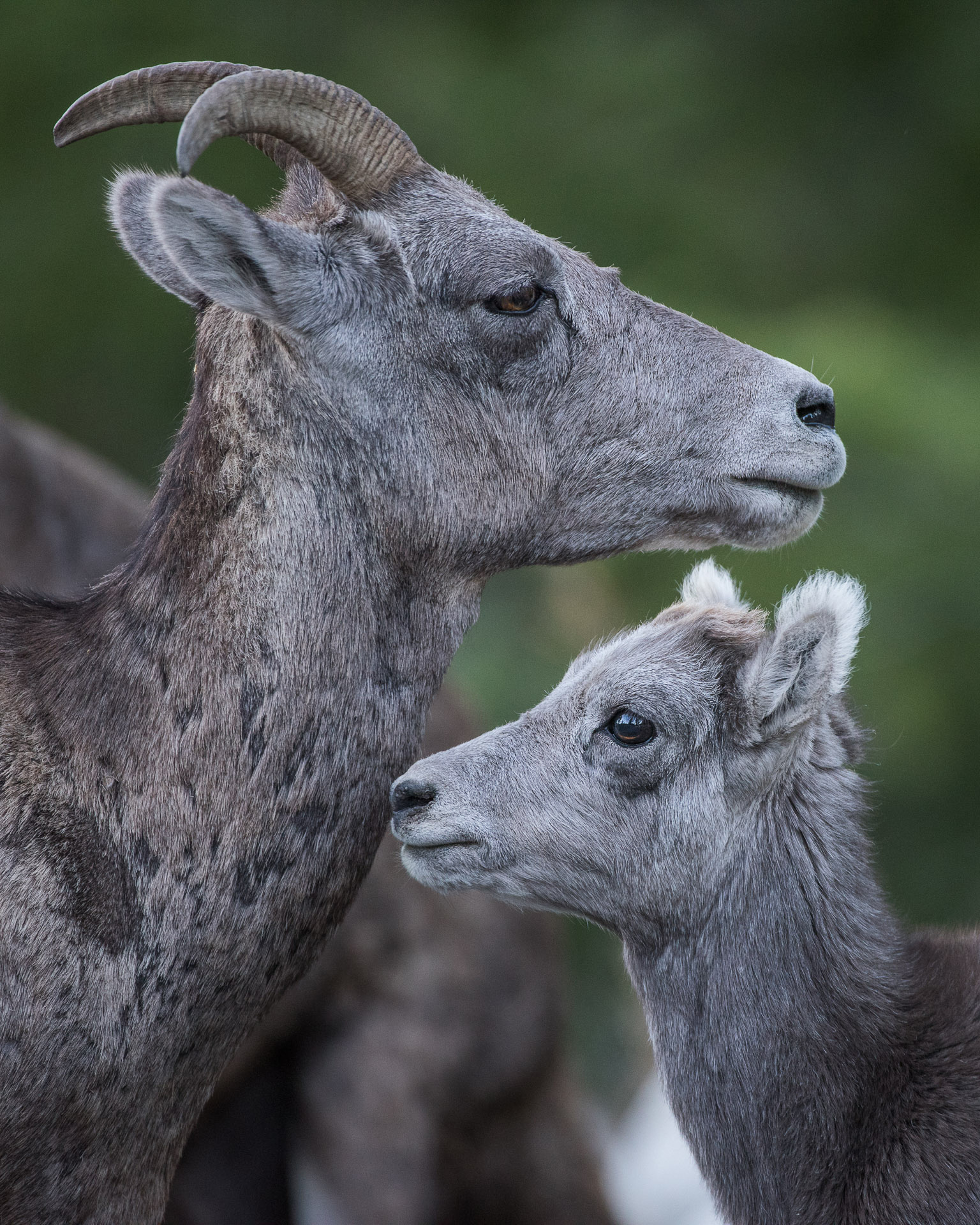 Here’s another one from Yellowstone — a mother bighorn with her lamb. For most of the year, the males live in bachelor herds at higher elevations while the females can be found down below with the young. It’s only during breeding season that the rams and ewes get together. We came across several large herds of females and young on this recent trip, very habituated to our presence and going about their business as if we weren’t there. Nikon D810 with Nikkor 200-400mm lens (at 400mm) ISO 2000, f/4 at 1/320th of a second