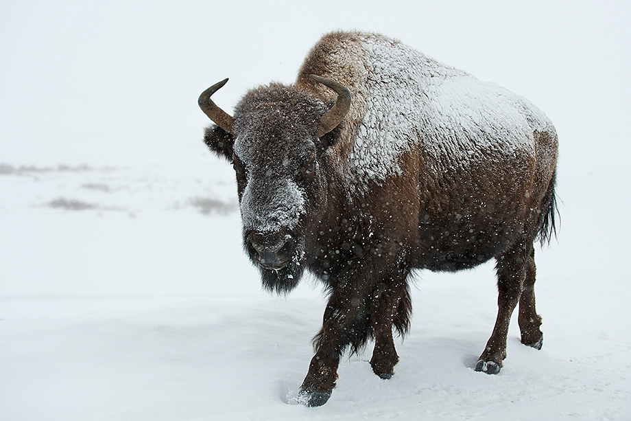 As I mentioned yesterday, I was after wolves this weekend so didn’t really concentrate on any other creatures. That being said, there were bison everywhere, especially on the road. It’s much easier for them to move from one place to another by traveling on the plowed road than through four feet of snow. The guy above walked right past my driver’s side window. I recorded a little iphone video after I took the shot. See below: