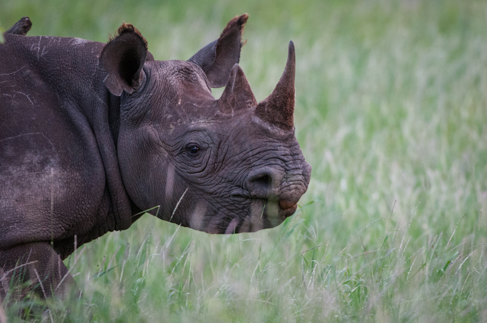 Last month, I posted a white rhino. This is the more rare and endangered black rhino (not that the white rhino isn’t in trouble as well). But the black rhino is currently listed as “Critically Endangered.” I saw this one at the Lewa Wildlife Conservancy in Kenya, which is working hard to save these amazing beasts from extinction by protecting them from poachers and other dangers. Nikon D300 with Nikkor 200-400mm lens (at 400mm) ISO 1600, f/4 at 1/125th of a second
