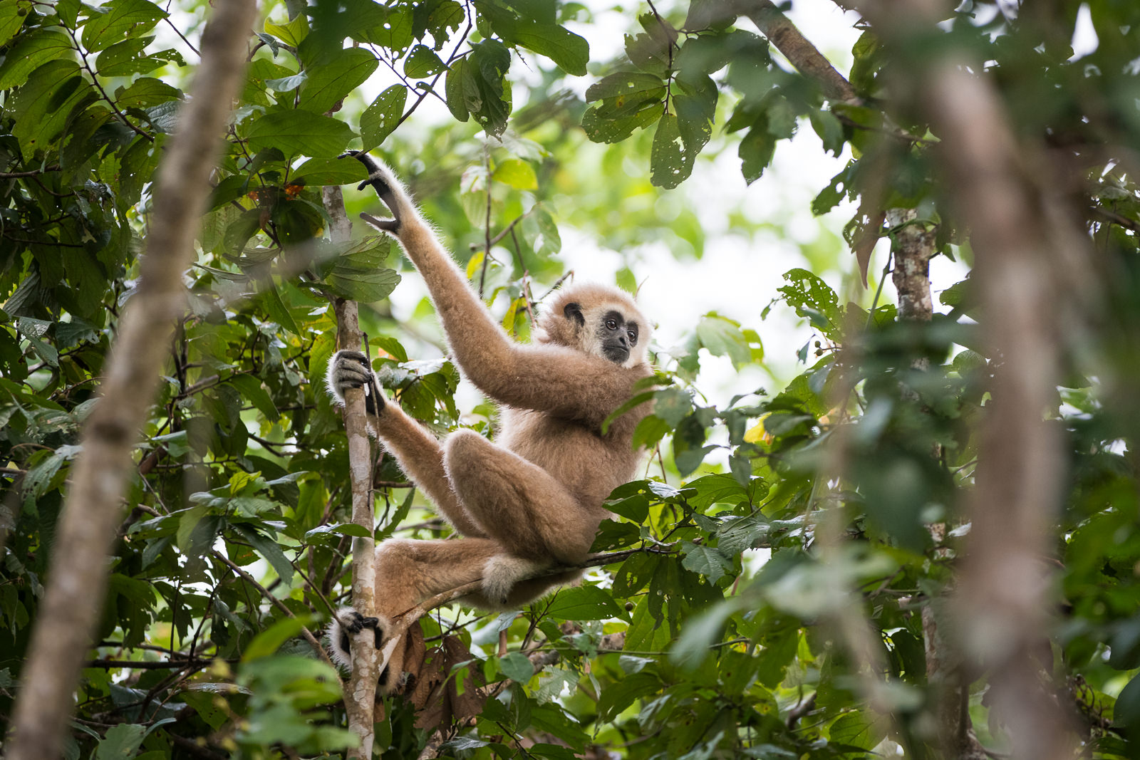 Lar gibbons, also known as white-handed gibbons, in Thailand’s Kaeng Krachan National Park are famous for their haunting, echoing duets. Mated pairs sing complex, synchronized calls at dawn to defend territory and strengthen their bond. Nikon D500 with Nikkor 200-400mm lens (at 280mm) ISO 800, f/4 at 1/160th of a second.