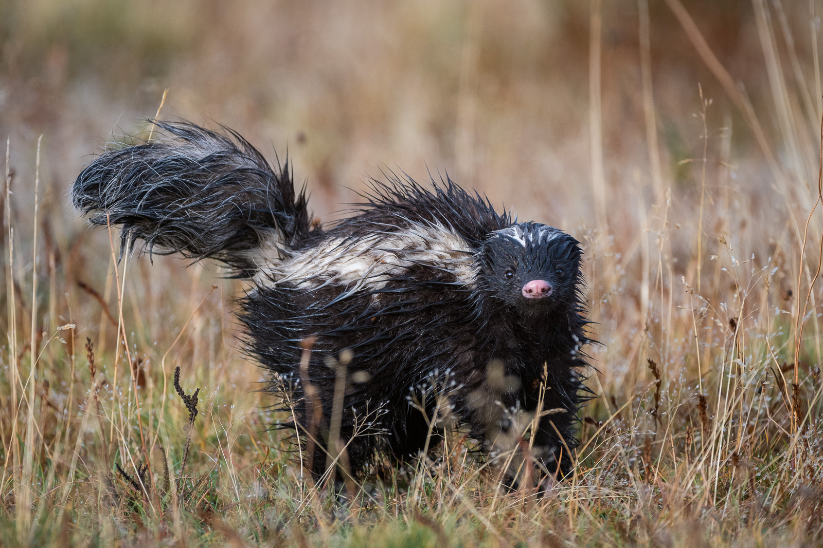 The Patagonian hog-nosed skunk is native to the open plains and scrublands of southern Argentina and Chile. It’s named for its pig-like snout, which it uses to root through soil for insects, grubs, and plant matter. Unlike its North American relatives, this skunk is more active during the day, especially in the cooler Patagonian climate where I photographed this one in Torres Del Paine National Park. Nikon D500 with Nikkor 200-400mm lens (at 350mm) ISO 800, f/4 at 1/3200th of a second.