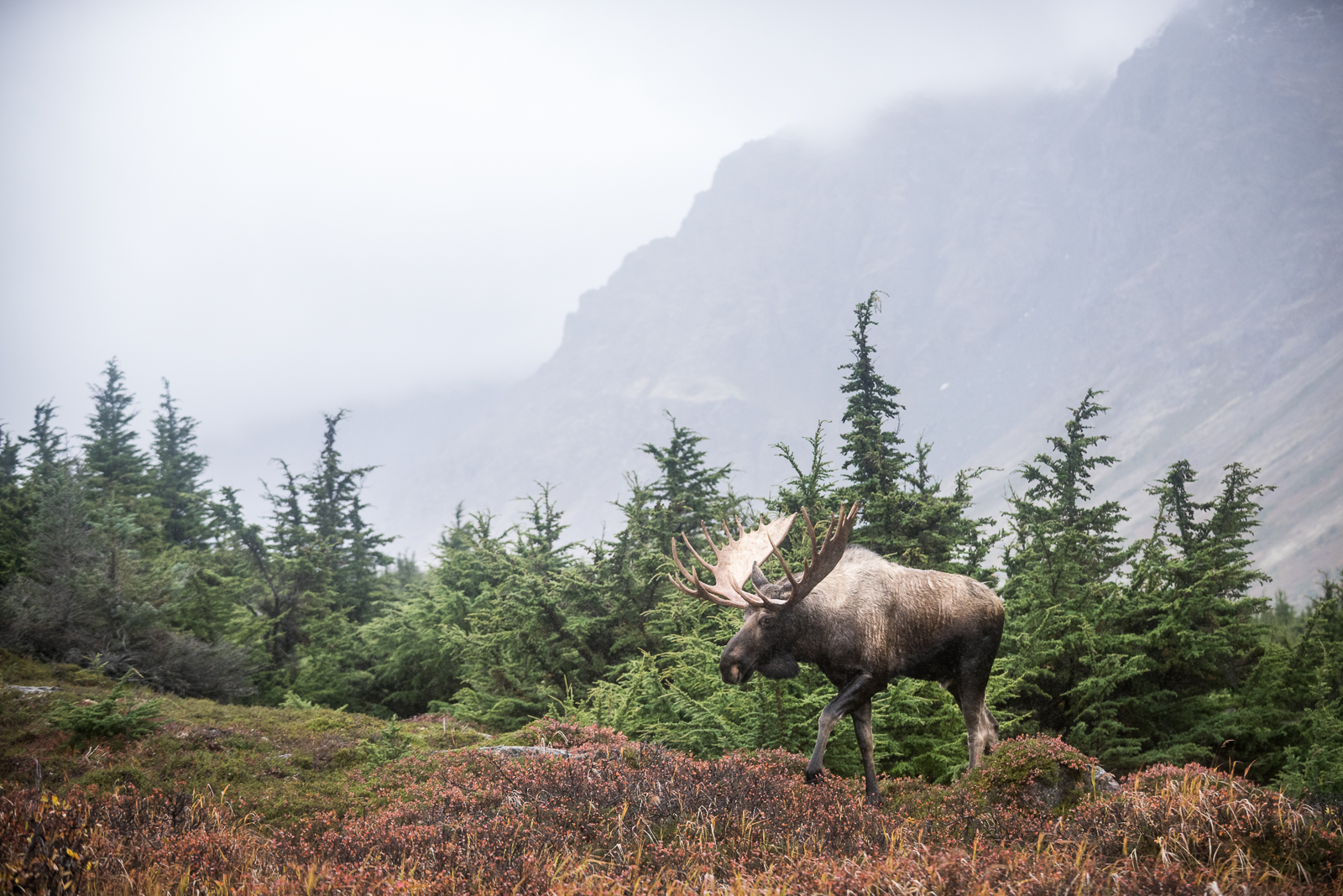 It’s moose rutting season again in Alaska. This is a shot I took back in September of 2017. Would love to get back and have even close to the experience I did when I ran into about five or so males (hard to tell as they kept disappearing and reappearing from the bushes) and a single female doing their yearly dance. Nikon D810 with Nikkor 70-200mm lens (at 86mm) ISO 800, f/4 at 1/1600th of a second.