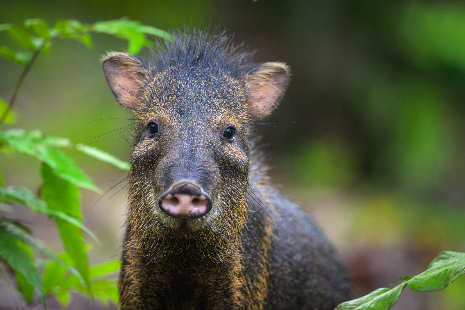 The collared peccary is a pig-like mammal found throughout the southwestern U.S., Central America, and parts of South America. It gets its name from the pale collar of fur that wraps around its shoulders. They live in social groups called “squadrons” and communicate with grunts, squeals, and scent glands that leave a strong musky odor. Tough and adaptable, collared peccaries thrive in deserts, forests, and even urban edges. This one was photographed earlier this year in Costa Rica. Nikon Z8 with Nikkor 500mm PF lens, ISO 9000, f/5.6 at 1/400th of a second.