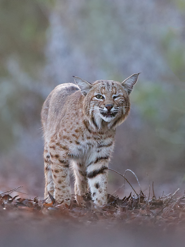 I’ve posted a few photos of this bobcat before, but none of the wink that it gave me when it first spotted me down on the ground taking its picture. The encountere happened at a place called the San Joaquin Wildlife Sanctuary — a small patch of wilderness just two miles from the hotel I was staying at in downtown Irvine, California. Nikon D300 with Nikkor 200-400mm lens (at 400mm) ISO 1600, f/4 at 1/400th of a second