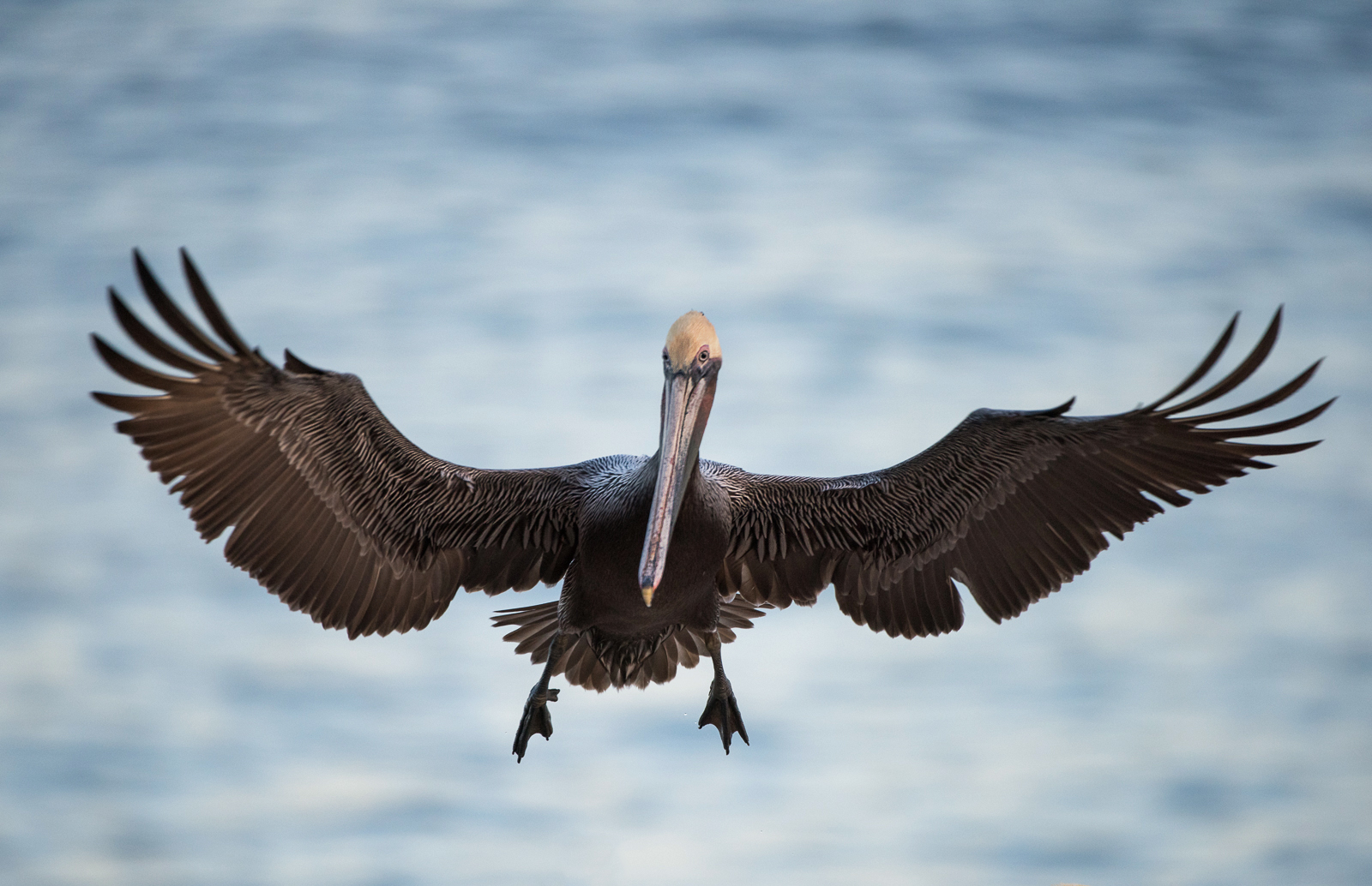 Pelicans are always fun to shoot, especially in flight. I got out to La Jolla on a recent business trip to San Diego and spent a morning watching them coming and going on the steep cliffs on the north edge of town. This guy was obviously coming in for a landing after a flight out to sea. Nikon D810 with Nikkor 200-400mm lens (at 400mm) ISO 800, f/4 at 1/1250th of a second