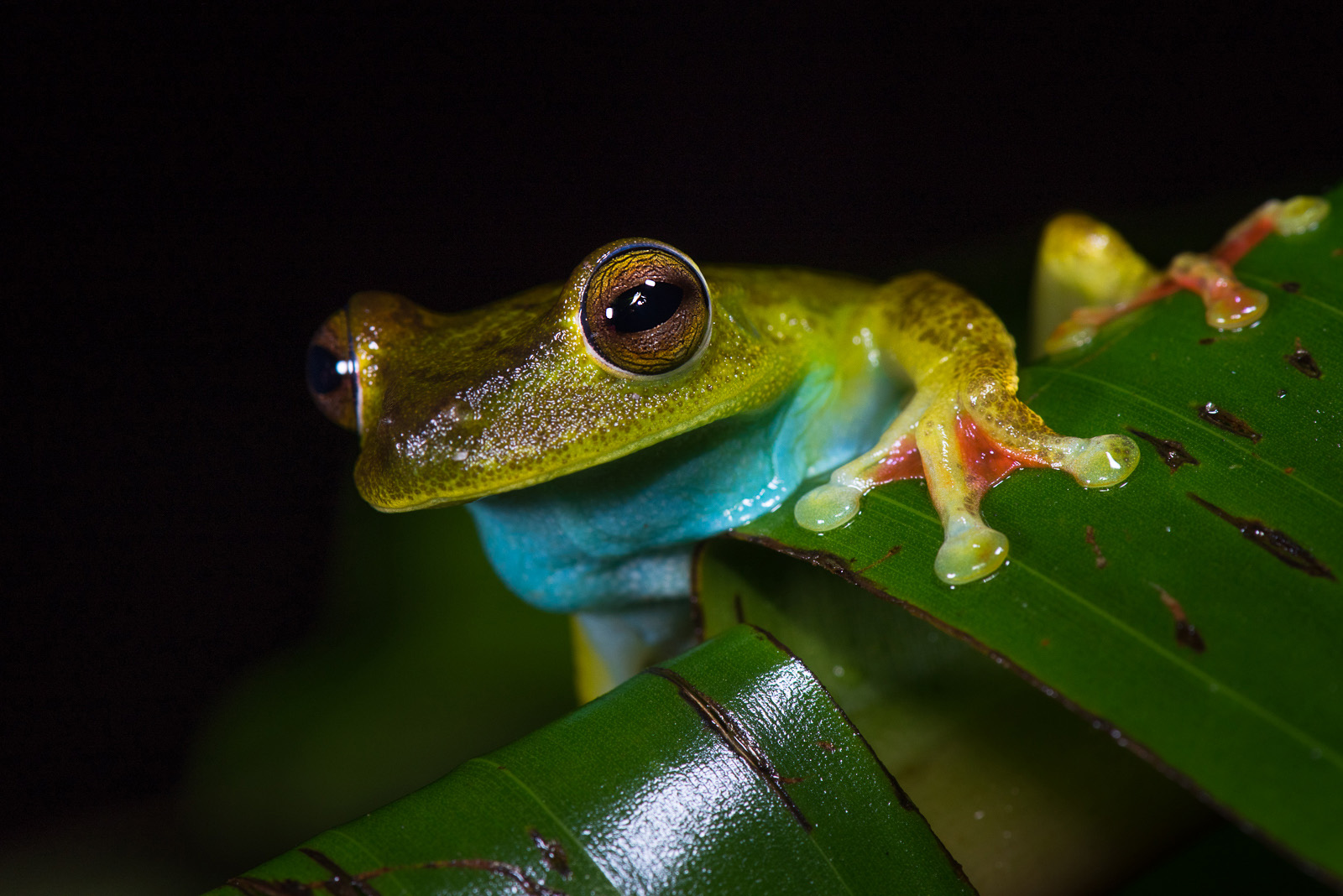 I’ve identified this guy as a Canal Zone tree frog, but also seems to go by the red-webbed tree frog. Either way, it was photographed at night in the town of El Valle in Panama. Nikon D810 with Nikkor 105mm macro lens, ISO 200, f/14 at 1/60th of a second, two Nikon SB-900 flash units.