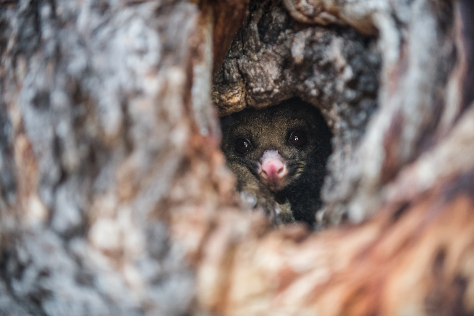 I photographed these three sugar gliders at the Bonorong Wildlife Sanctuary in Tasmania. Bonorong rescues injured and orphaned animals and rehabilitates them before releasing back into the wild. Like much of the wildlife in Tasmania, sugar gliders are marsupials. They are also nocturnal possums. Their name comes from the fact that they prefer sugary foods like sap and nectar and they are able to glide through the air from tree to tree. Nikon D800 with Nikkor 105mm macro lens, ISO 3200, f/4.5 at 1/100th of a second.