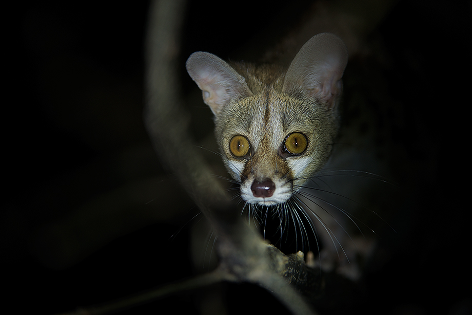 Here’s another look at a genet. They are commonly called genet cats, but aren’t really cats at all and are more closely related to mongooses. This one came creeping around our camp one night in Botswana. We were actually at dinner and luckily, I brought my camera along in case of just such a thing. Nikon D800 with Nikkor 200-400mm lens (at 200mm) ISO 640, f/4 at 1/60th of a second, two SB-900 flash units on off camera bracket