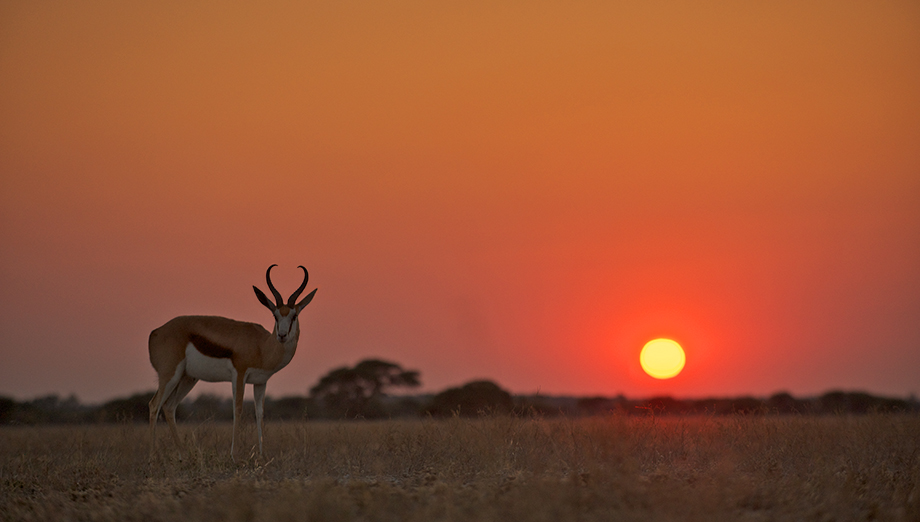 A springbok stops to pose for the camera in front of the rising sun in the Kalahari Desert. Nikon D700 with Nikkor 70-200mm lens (at 160mm) ISO 800, f/4 at 1/1600th of a second