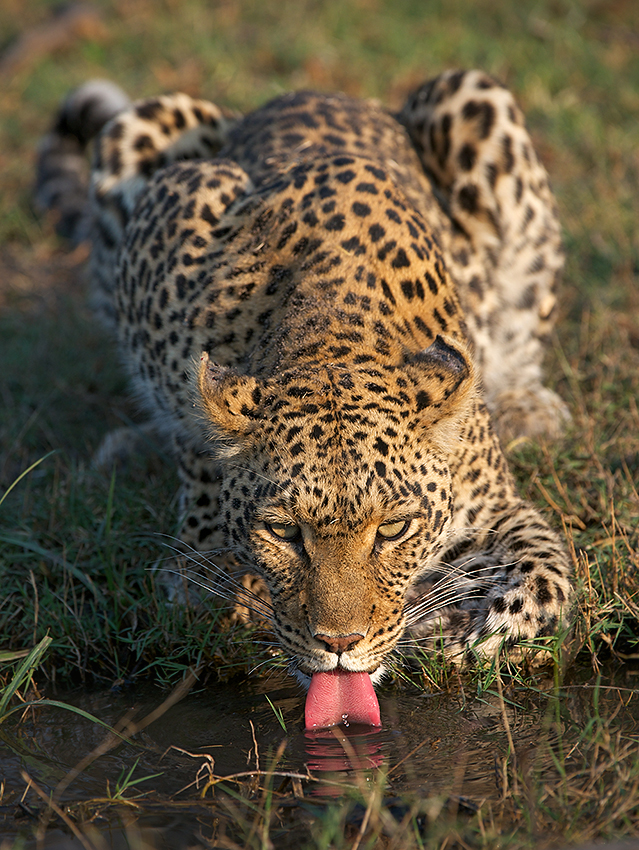 This leopard had a busy morning stalking and taking down a male impala. We missed the kill, but we caught back up to her later in the day and caught her quenching her thirst. Nikon D800 with Nikkor 200-400mm lens (at 350mm) ISO 400, f/5.6 at 1/800th of a second