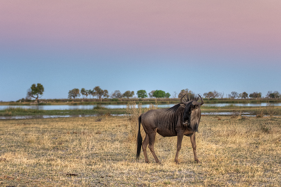 Wildebeest don’t get much respect. Not from the predators that consider them their main food source, or from the locals who claim that they are made up of all the spare parts that the other animals didn’t want. As the saying goes, they have the tail of a horse, the quarters of a hyena, the stripes of a zebra, the mane of a lion, the horn of a buffalo, the brain of a bird, and the face of a grasshopper. All of which kind of makes me like them even more. This one was photographed at the tail end of twilight one night in the Linyanti swamp area of northern Botswana. The sexy beast was just still enough, watching a herd of elephants, to allow me to capture several exposures and combine them in post. Nikon D700 with Nikkor 70-200mm lens (at 70mm) ISO 800, f/2.8 at 1/13th, 1/25th, 1/50th, 1/100th and 1/200th of a second shutter speeds