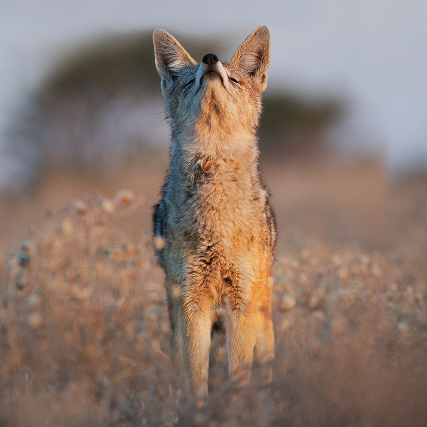 Usually jackals run away if you approach them too closely, but this guy seemed as curious about me as I was about him. I was even able to get out of the safari vehicle and down on the ground for some low angle shooting. He kept on moving closer and closer, sniffing the air every five steps or so. Eventually he passed by me about twenty feet away and headed on his way.