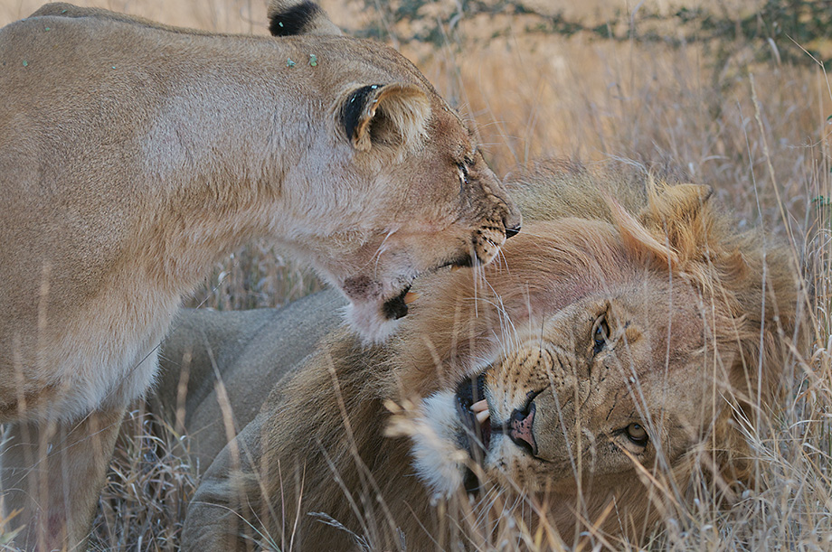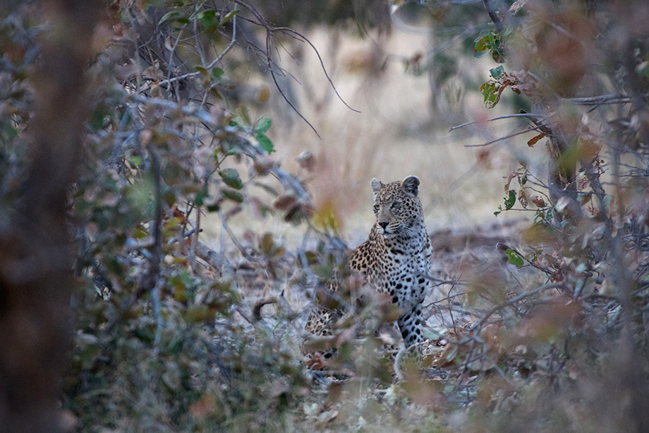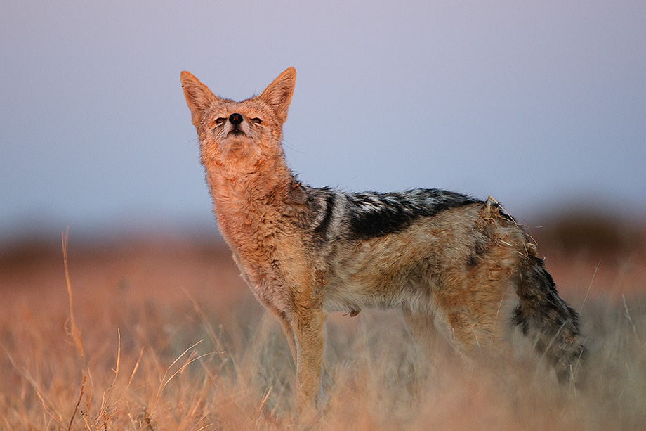Most of the black-backed jackals that I saw in Botswana ran away as soon as I approached, but this one was much less wary and much more curious. I came across him several times and each time he cautiously approached, stopping to sniff the air every now and again before coming closer. I was able to get out of the safari vehicle and down on the ground to get nice eye level portraits. This photo was taken first thing in the morning as the sun was just beginning to rise.