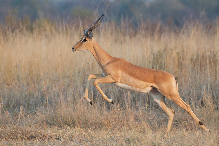 Impala were easily the most common animals that I saw in Botswana, and as such, they were often overllooked. That being said, they really are an elegant looking antelope. Usually they sat patiently while I took portraits of them looking at the camera, however, this one gave me a bit of an action shot when he ran across the savannah.
