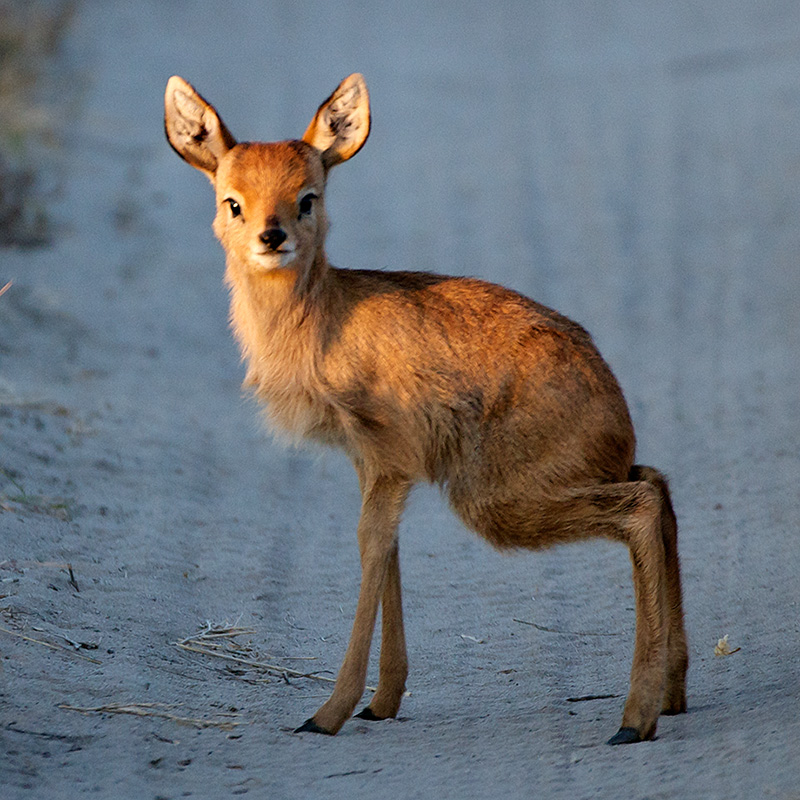 We were on our way to go visit the meerkats one morning in the Makgadikgadi Pan area of the Kalahari Desert when we came across this baby steenbok blocking the road. From the photo, it’s tough to get a sense of scale, but this guy was tiny. Not much bigger than the average housecat. We couldn’t see the mother, but she was most likely hiding in the bushes somewhere nearby.