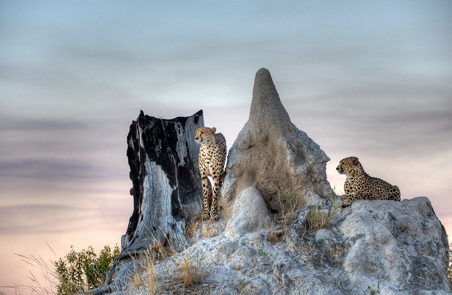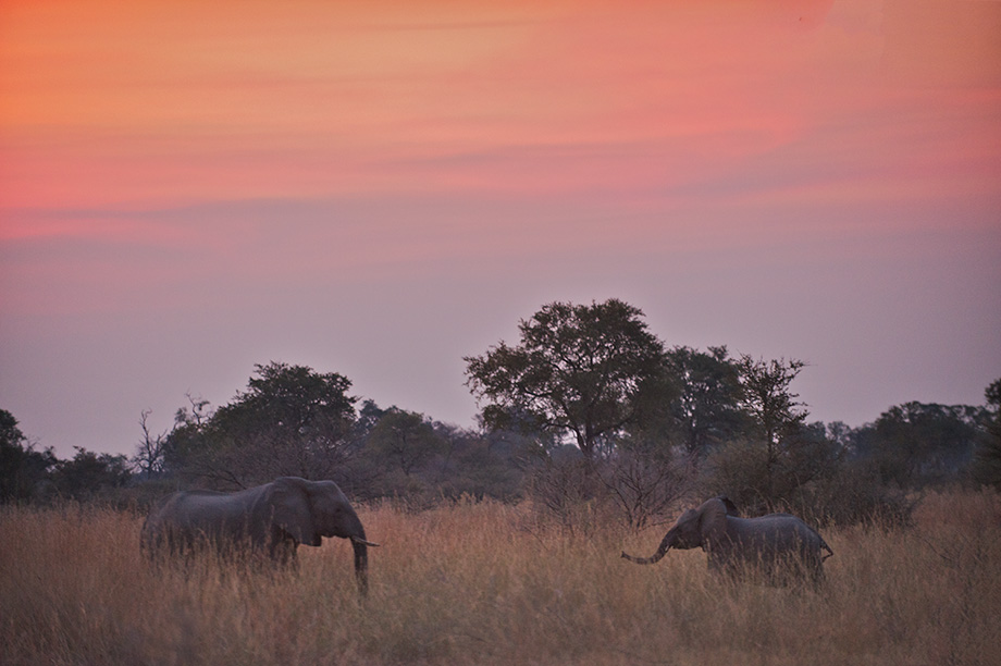 It was very late in the day and the sun had long since disappeared when I captured this shot of two elephants in Botswana’s Linyanti Swamp. I used a split graduated neutral density filter in front of my lens (as well as a very high ISO of 3200) in order to hold the color in the sky while exposing for the foreground.