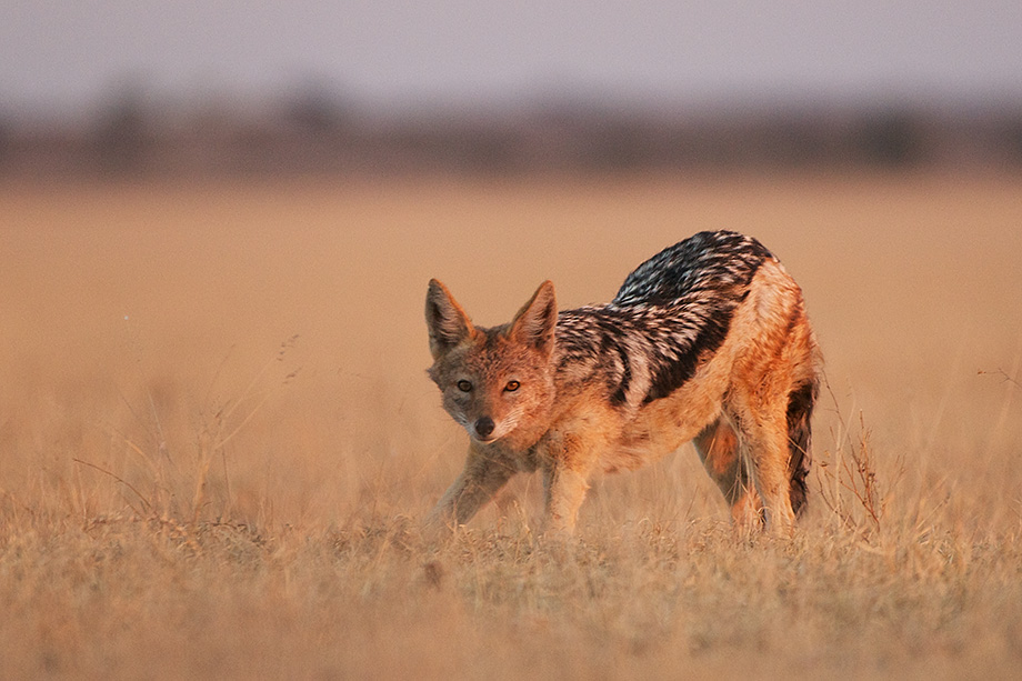I really liked these black-backed jackals. They look a lot like coyotes, but a lot more attractive. At least I think so. I saw them throughout Botswana, but especially in the Kalahari Desert. For the most part they ran when I approached, but this one was quite curious and approached me. In this photo, it was just getting up from resting and stretching like all dogs do.