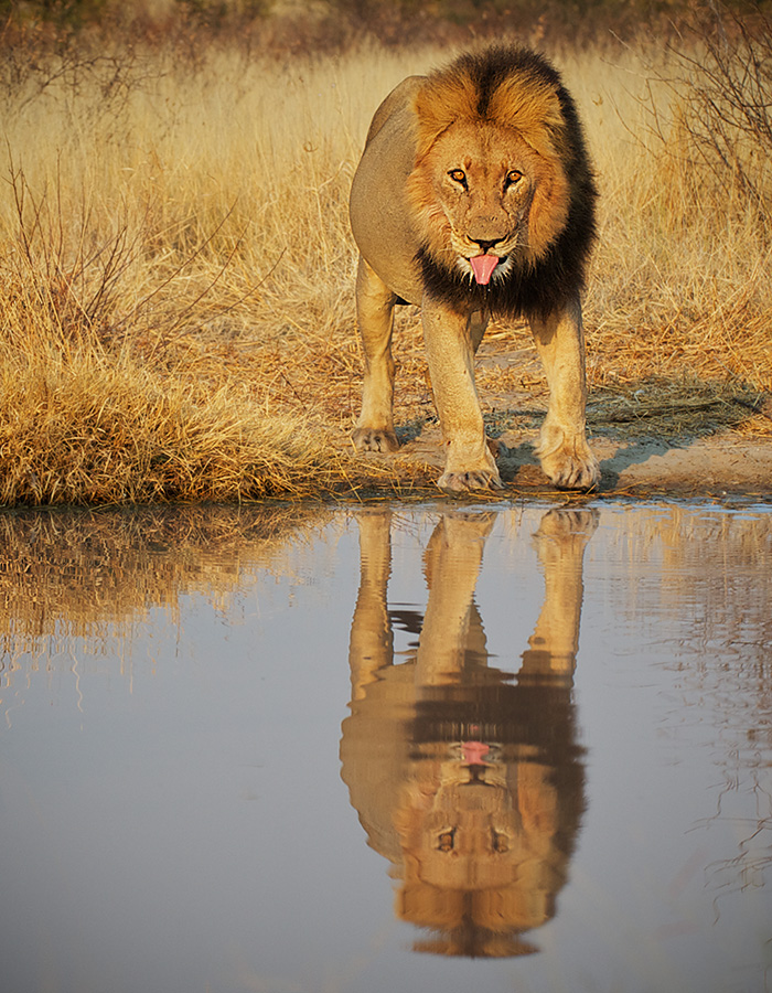 The male lions of the Central Kalahari Desert are famous for their black manes. Typically, the mane gets blacker as the lion gets older. This lion was part of the pride of 10 that I saw that included another, younger male with a much lighter mane. These guys also tend to be larger than the lions in the rest of Botswana.