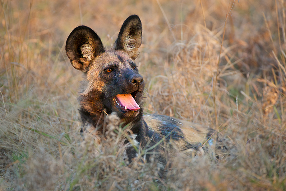 African wild dogs are an endangered species. They also happen to be one of the most sought after species by safari goers to Africa. People go crazy about these guys. It reminded me of the wolf people in Yellowstone. The first camp I stayed at in Botswana is supposed to be one of the best places to see them. Even so, it took us three days of tracking to find this pack of 11. When we did come upon them they were resting but would occasionally get up and walk around before plopping down again. And they yawned a lot — like this guy.