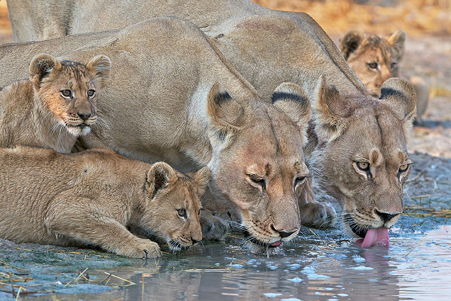 Back from Botswana today — a trip that was at times exhilarating while at others a bit disappointing due to a lack of animal activity. The local guides kept telling me that it was a bad time of year for wildlife, and that because of the extreme cold temperatures the animals weren’t getting up and about. That being said, after two straight weeks of game drives every morning and afternoon, a fair amount of good encounters started to add up. So although it wasn’t the bonanza I had expected based on previous trips to Africa, I was able to get decent to good looks at leopard (one adequate sighting), cheetah (encountered a trio of the same brothers on two occasions), civet, honey badger, elephant, zebra, giraffe, warthog, meerkat, mongoose, baboon, hyena, hippo, water buffalo, jackal, wild dog, wild cat, bushbaby, ostrich and many different bird and antelope species (steenbok, reedbuck, oryx, impala, red lechwee, kudu, springbok, tsessebe, etc) And of course… a few lions. For a while it didn’t look so good for me and lions and I thought I would set a new record by being the only person to ever take a two week safari to Africa and not see lions. This pride of ten (including six cubs, two adult females and two males) was spotted a week and a half into the trip. Up until then I hadn’t seen any. And it was in an area that I wasn’t really expecting to see any lions — the middle of the Kalahari Desert. I’ll upload a few shots of the majestic adult males in a future post, famous for their black manes.