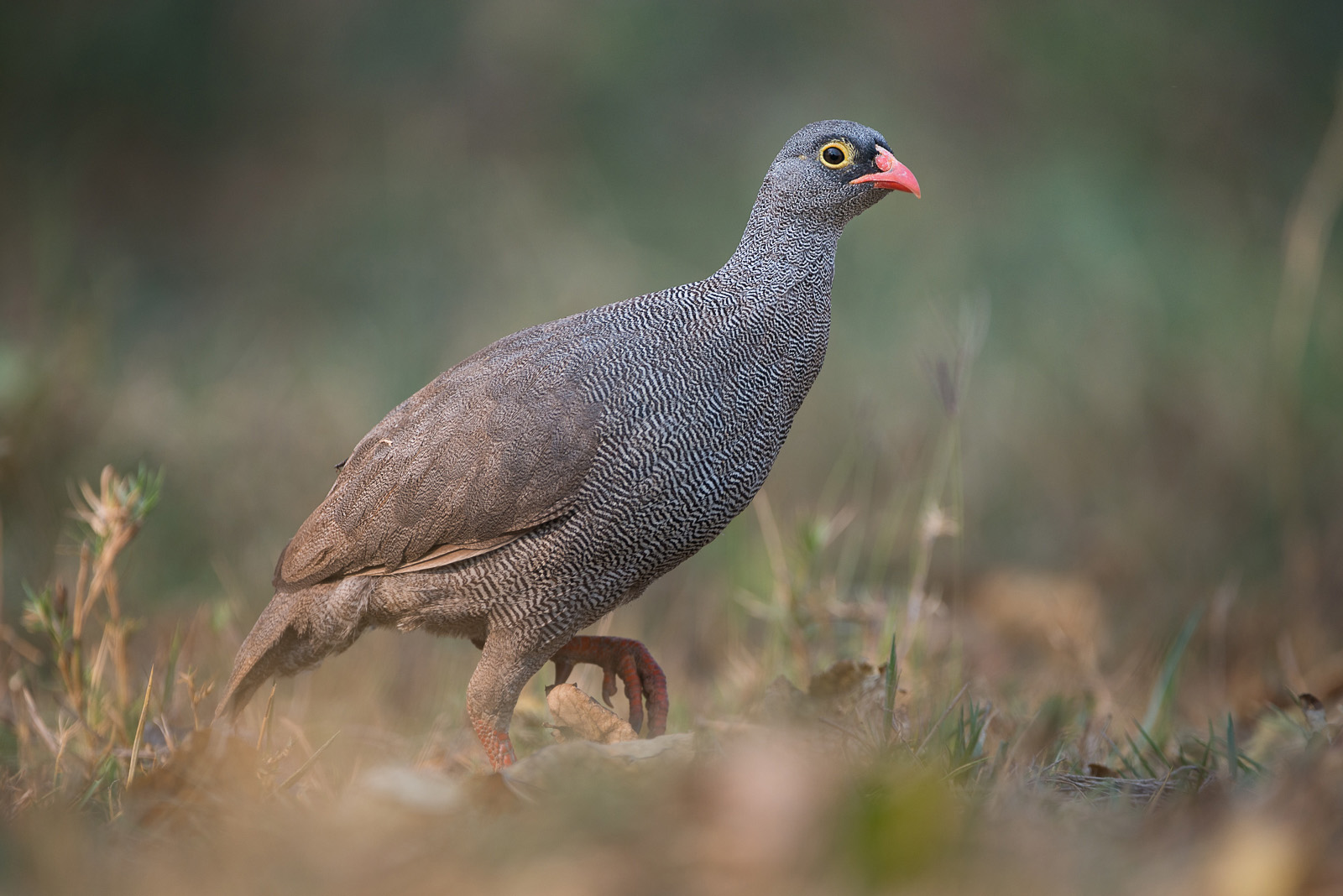 On safari, not many people bother with the francolins that always seem to be scurrying out of the way as we drive toward a lion, leopard or some other big ticket item. I like to capture everything, and made sure I got out of the vehicle and down on the ground for a better perspective of this red-billed francolin. Photographed in the Linyanti Concession of northern Botswana. Nikon D800 with Nikkor 200-400mm lens (at 400mm) ISO 400, f/4 at 1/1000th of a second.
