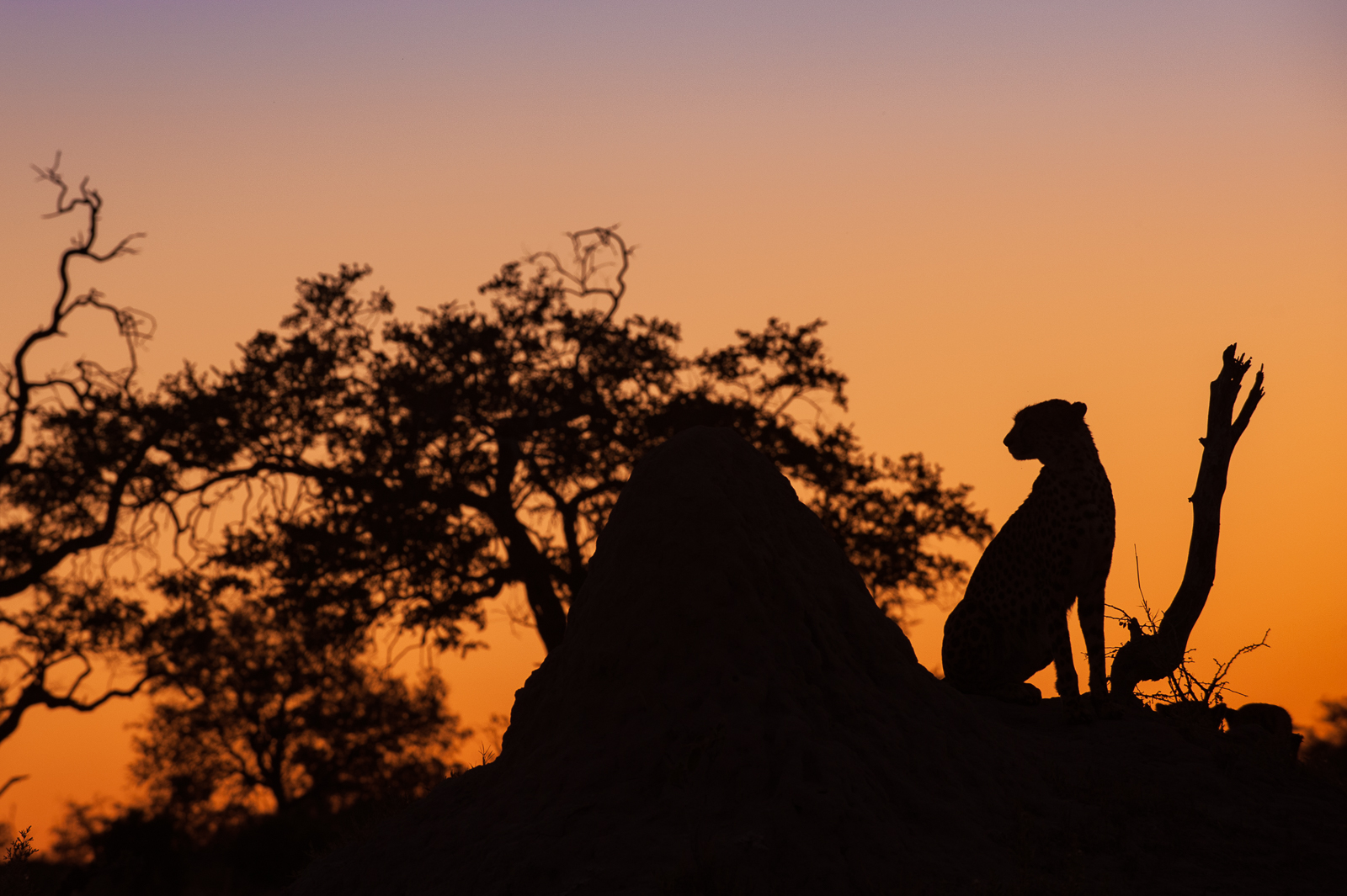 I usually try to capture some detail, even in silhouettes, but this image of a cheetah and termite mound seemed to call for the full black out of the subject against the twilight sky. Photographed in the Linyanti concession of Botswana. Nikon D700 with Nikkor 70-200mm (at 200mm) ISO 800, f/8 at 1/200th of a second.