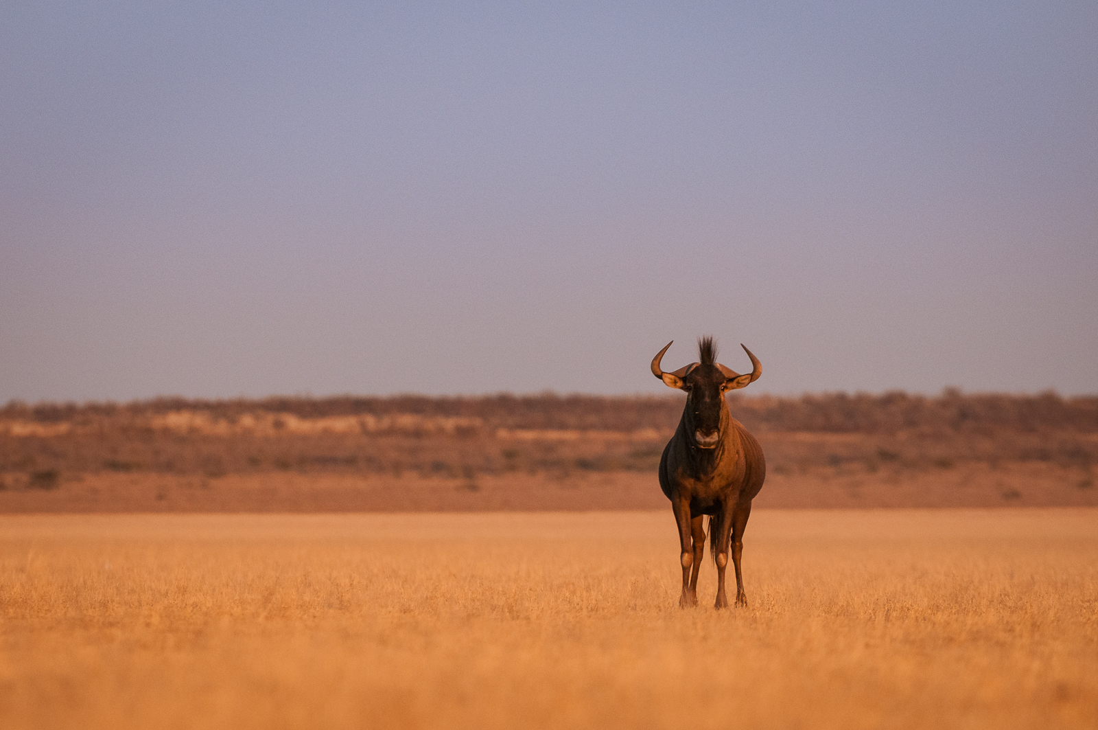 Wildebeest don’t get a lot of respect. I myself rarely post this most ubiquitous of savanna grazers. Time to change that. This is the blue wildebeest, also known as the white-bearded wildebeest, common wildebeest or brindled gnu. To predators like lions, leopards, hyenas and cheetah, they are also known as dinner. I photographed this one in the Central Kalahari Game Reserve of Botswana. Nikon D300 with Nikkor 200-400mm lens (at 400mm) ISO 800, f/5.6 at 1/800th of a second.