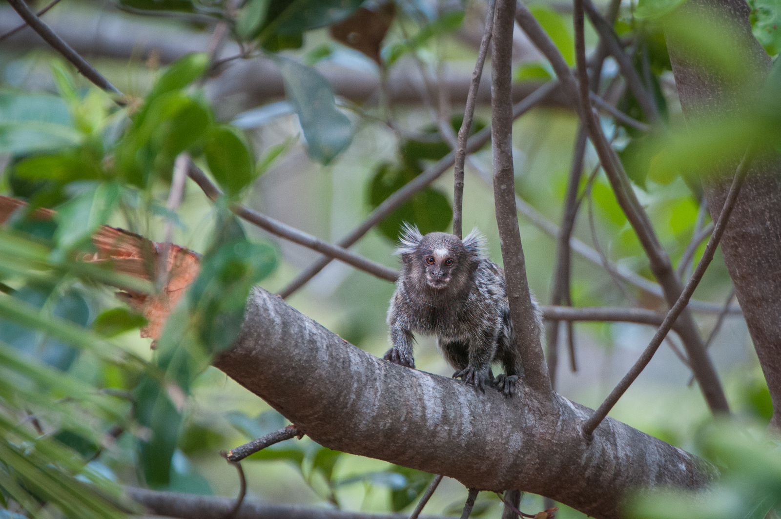 These little primates are about the size of a common gray squirrel. That is to say, very small. A troop of them came through our camp one afternoon, hung around for a minute or two and then moved deeper into the forest. Like yesterday’s post, this one was photographed in the Hyacinth Valley of central Brazil. Nikon D300 with Nikkor 200-400mm lens (with 1.4 teleconverter for 550mm) ISO 800, f/5.6 at 1/160th of a second.