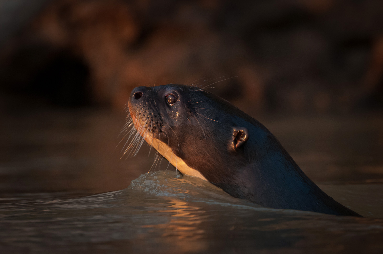 This giant river otter was swimming in a shadowy area along the banks of a tributary in the Pantanal of Brazil, with just hints of the bright sun sneaking through. I was able to close down the aperture a few stops of light to get the face properly exposed while the rest of the image went dark. Nikon D300 with Nikkor 200-400mm lens (at 400mm) ISO 800, f/5.6 at 1/640th of a second