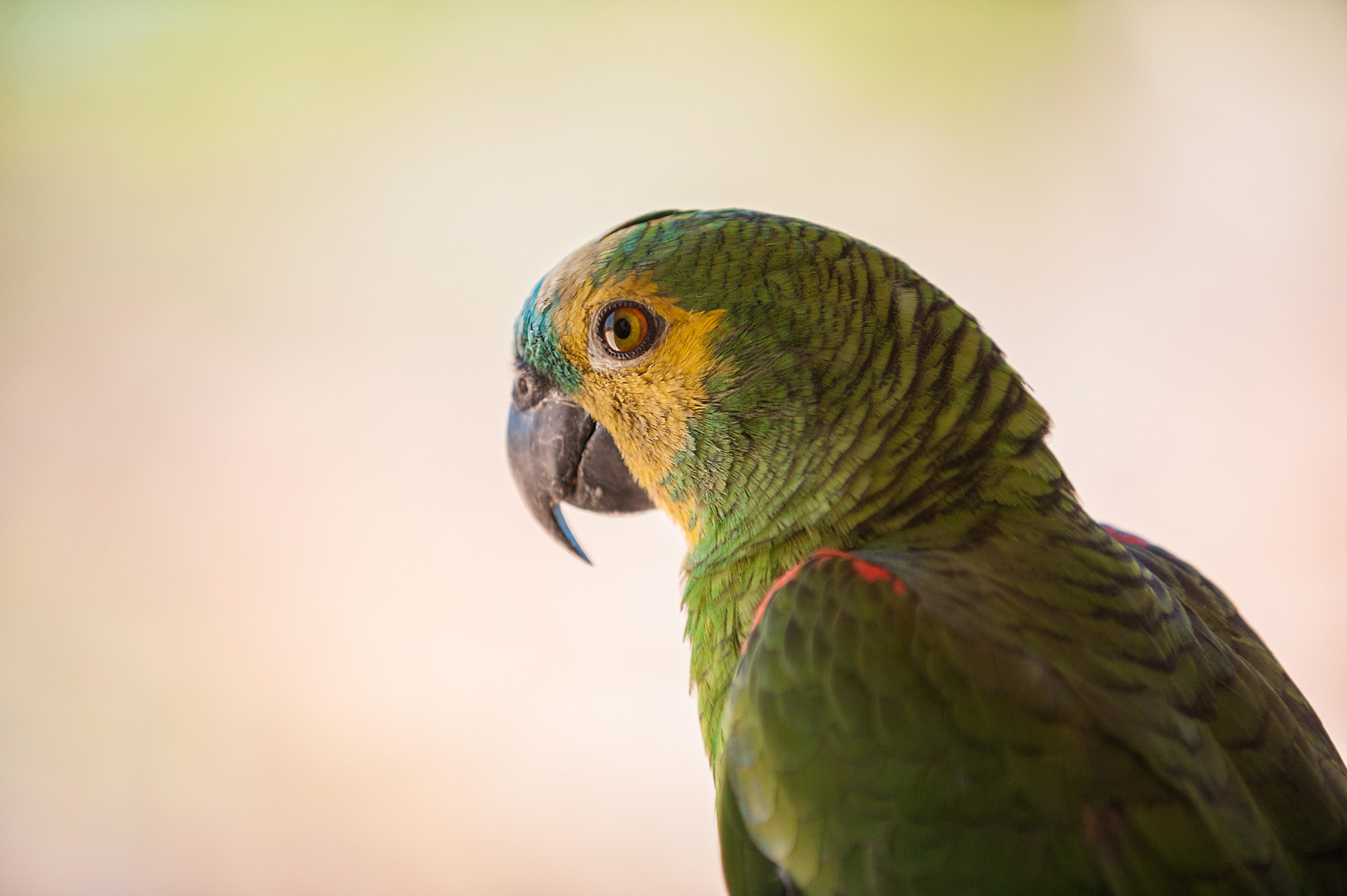 I photographed this turquoise-fronted Amazon parrot in northern Brazil in the wild. That said, they are a very common pet species and this one allowed me a very close approach. It varies from bird to bird, but some turquoise-fronted Amazons are excellent at talking. All of them like to sing. Nikon D700 with Nikkor 70-200mm lens (at 200mm) ISO 800, f/4 at 1/1600th of a second.