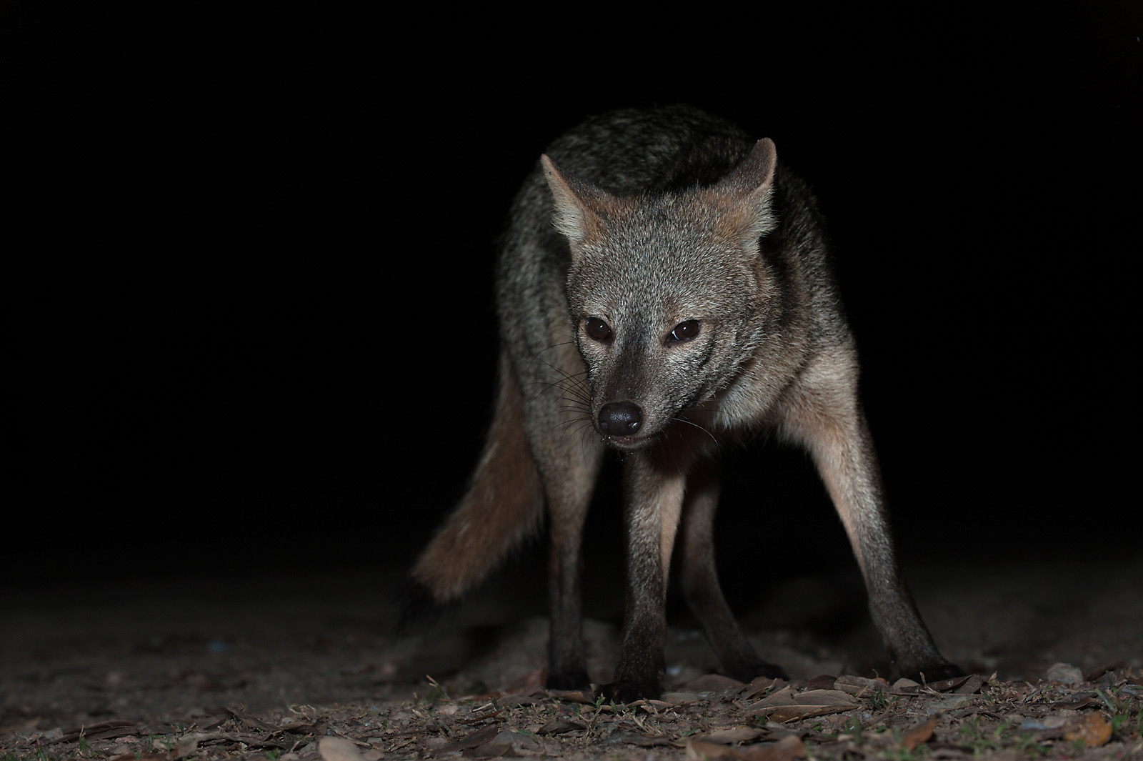 During the wet season, the crab-eating fox searches for crabs out on the muddy floodplains of central South America. Thus the name. This crab-eating fox, however, was looking for something a bit different — no doubt attracted to the smells coming from the lodge I was staying at in the Pantanal of Brazil. Nikon D700 with Nikkor 70-200mm lens (at 105mm) ISO 200, f/10 at 1/60th of a second. Two Nikon SB-800 flash units.