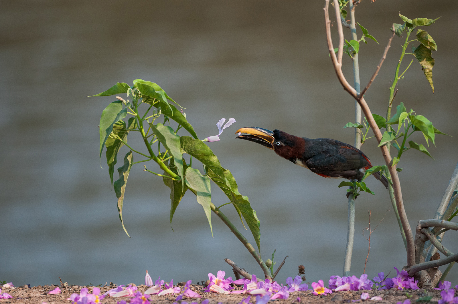 Another scene from the shores of the Pantanal in Brazil. This is a chestnut-eared aracari enjoying a bit of a floral snack. Aracaris have toucan-like beaks and are always a great sighting when visiting Central and South America. Nikon D300 with Nikkor 200-400mm lens (at 400mm) ISO 800, f/4 at 1/2500th of a second.