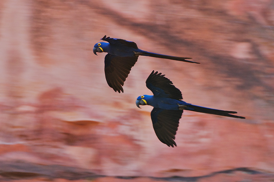When I went to Brazil two years ago, one of the main species that I wanted to photograph — and expected to photograph — were hyacinth macaws. As it turned out, I only saw about four of them, and not until they were flying away. These are two of the four. Beautiful birds — brought to life in the Disney movie “Rio.” Nikon D300 with Nikkor 200-400mm lens and Nikon TC-E14 II teleconverter (for a total of 550mm/825mm with crop factor) ISO 400, f/5.6 at 1/200th of a second