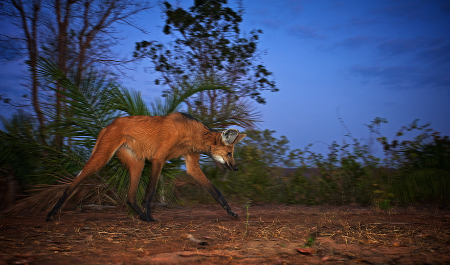 The maned wolf is graceful and yet a bit awkward at the same time. Often referred to as a fox on stilt, they are native to the central portion of South America — mainly in Brazil, where I photographed this one. They are mostly nocturnal and I used a dual flash setup and a ground level perspective to capture this image at night. Nikon D700 with Nikkor 17-35mm lens (at 35mm) ISO 200, f/8 at 1/60th of a second