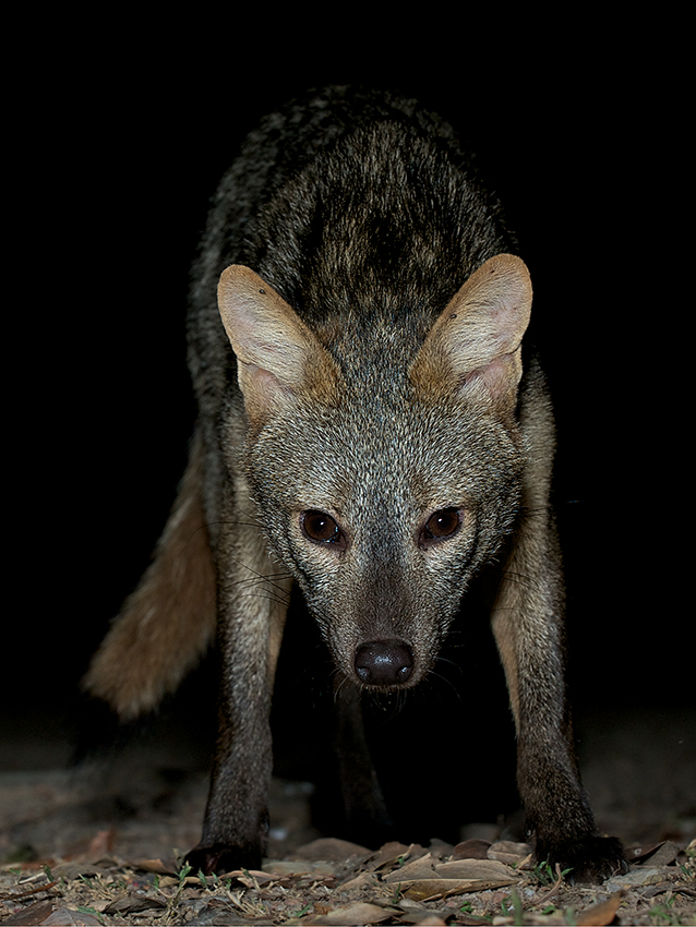 While in the Pantanal region of Brazil one night, a couple of crab-eating foxes came poking around our lodge, looking for scraps. I got down on the ground with my camera and flash and fired off a couple of quick shots of this guy who clearly thought that I had something more than a camera in my hand. Nikon D700 with Nikkor 70-200mm lens (at 102mm) ISO 200, f/10 at 1/60th of a second, Nikon SB-900 flash
