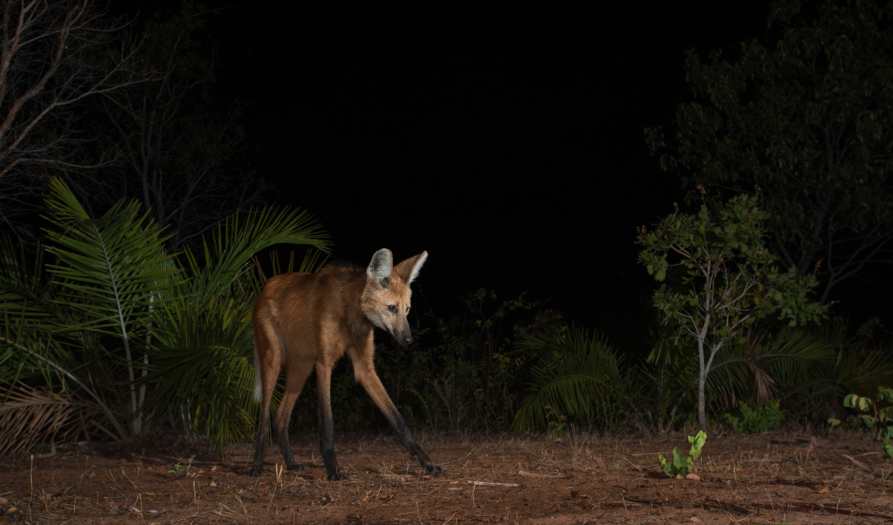 Friday it was the elk at twilight, today the maned wolf. For this photo I had the benefit of a few flash units to help with the lighting. Some of you might remember the maned wolf from previous posts. They are sometimes referred to as a fox on stilts. They are, in fact, the largest wild canid, standing over four feet tall. It is thought that their long legs are an adaptation to the tall grasslands in which they live. They range across central south America, mostly in Brazil, where I saw this one. Nikon D700 with Nikkor 17-35mm lens (at 35mm) ISO 800, f/4.5 at 1/50th of a second, two Nikon SB-800 flash units positioned off camera