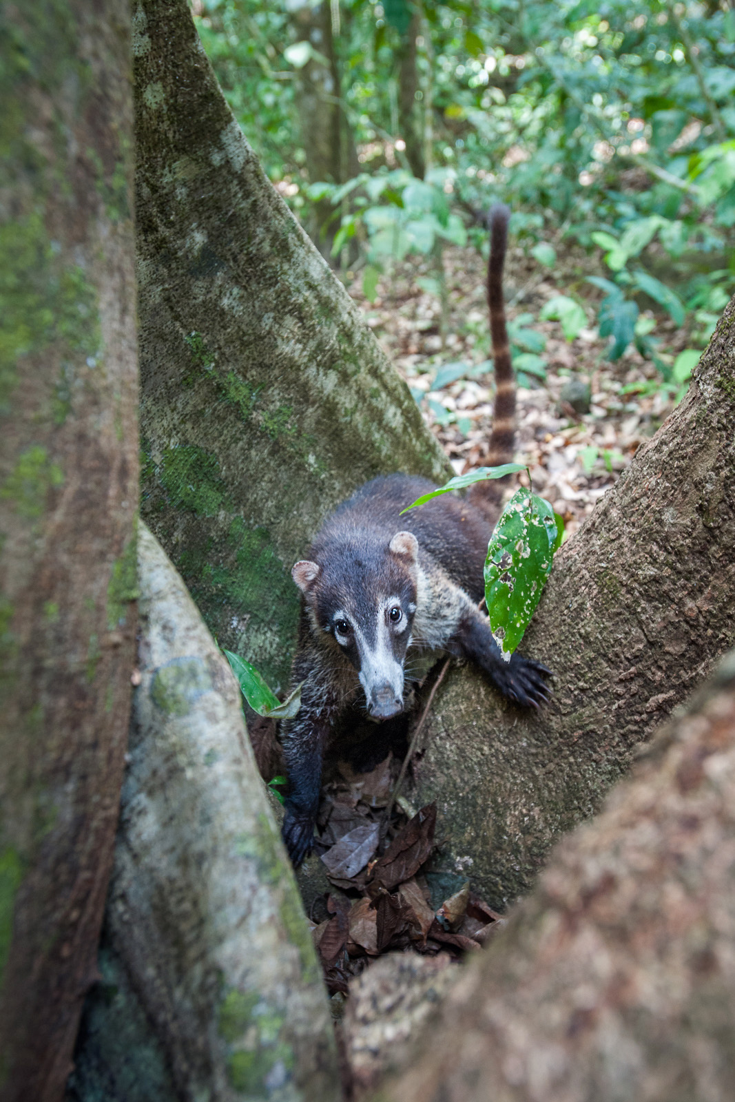 I was on a solo hike in Costa Rica’s Corcovado National Park when something told me there were coatis behind the roots of a fig tree… I quietly got into position. And I think the coatis ended up being more surprised to see me. Top photo: Nikon D800 with Nikkor 70-200mm lens (at 150mm) ISO 1600, f/3.2 at 1/1000th of a second