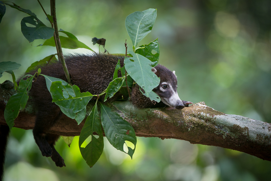 Coatis are fairly common in Costa Rica. They are comfortable both on the ground and in trees. This guy was resting during the heat of the day in Corcovado National Park. You can see why they have the nickname of “hog-nosed raccoon.” Nikon D800 with Nikkor 200-400mm lens (at 400mm) ISO 800, f/4 at 1/250th of a second
