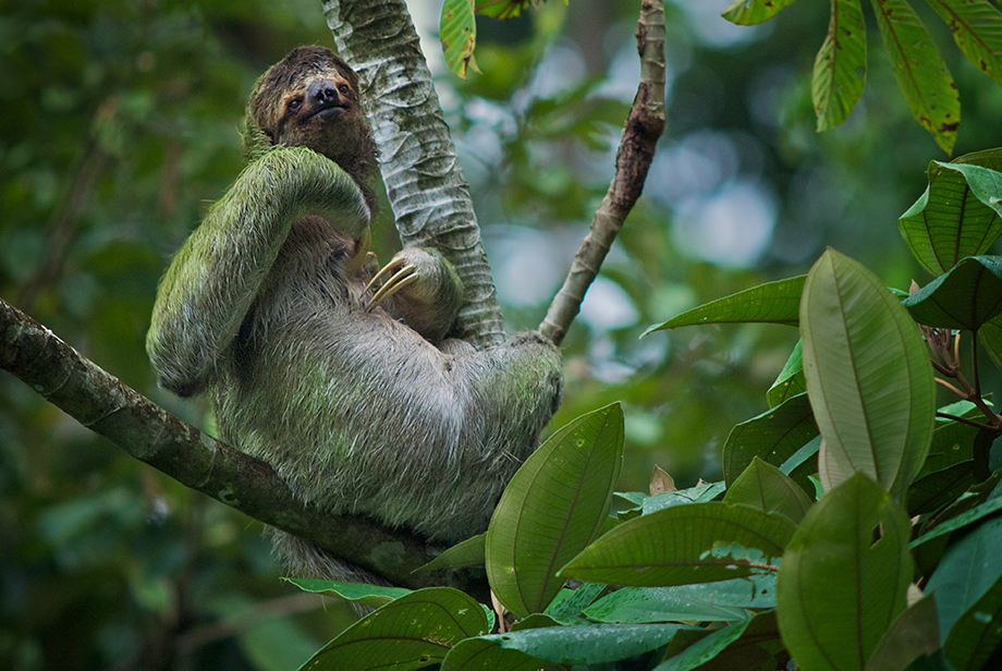 This sexy beast is a thee-toed sloth. It graced my presence in a place called Pavones in south western Costa Rica, not too far from the Panama border. Sloths move so slow that algae easily grows on their fur (moths also like to live in there). The algae shares a symbiotic relationship with the sloth — the sloth providing a home for the algae and the algae providing camouflage for the sloth.