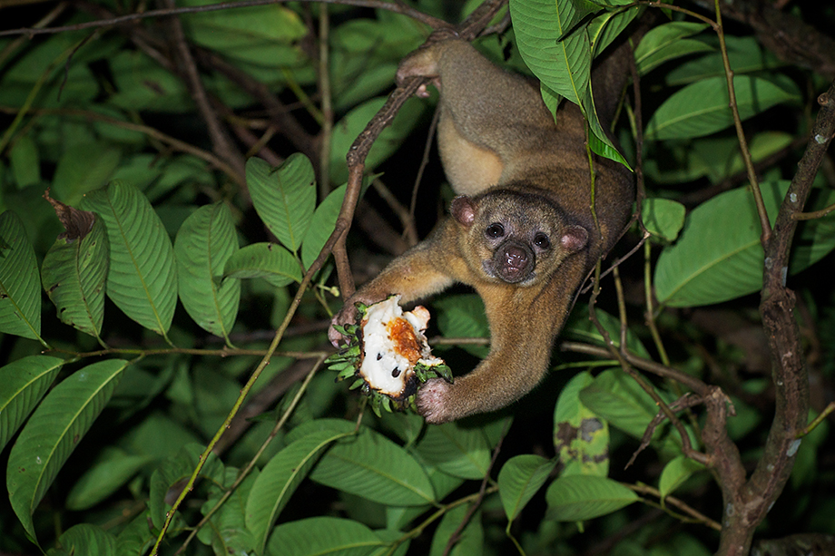 This is a photo that has been in my Costa Rica gallery but has never been posted to the blog. If nothing else, the kinkajou is my favorite animal name. They are also sometimes called honey bears. Strictly nocturnal, they are rarely seen by humans and I was pretty excited when I got this shot. I was out spotlighting on my own, which is very difficult because usually I need someone to shine a light on the animal so that I can acquire focus. I had to position my headlamp in just the right spot on my head so that it was pointing directly at the kinkajou while I was looking through the viewfinder. All came together nicely and I was able to get several exposures while the kinkajou munched on what appears to be some sort of pineapple-like fruit. Nikon D200 with Nikkor 70-200mm lens (at 150mm) ISO 400, f/5.6 at 1/60th of a second, two Nikon SB-800 flash units mounted to a bracket