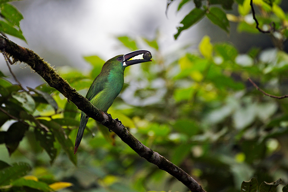 This crimson-rumped toucanet was outside our window while staying in the cloud forest of Ecuador. In fact, this shot was through the glass of our floor to ceiling windows — good thing the lodge keeps them nice and clean. Nikon D800 with Nikkor 200-400mm lens (at 400mm) ISO 800, f/4 at 1/400th of a second