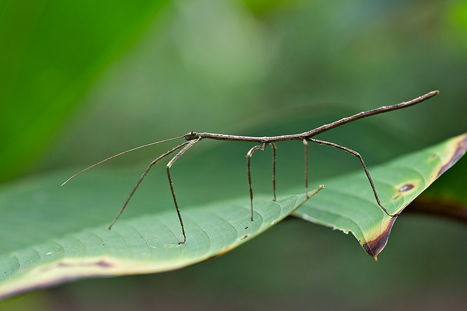 Yesterday a bat, today a stick insect. Why not? This guy was spotted creeping along a leaf in the cloud forest of Ecuador. The stick-like appearance is obviously camouflage. In addition to looking like a stick, they also walk in a jerky, back and forth motion, as if a piece of vegetation blowing in the wind. Nikon D700 with Nikkor 105mm macro lens, ISO 800, f/6.3 at 1/500th of a second (-0.33 ev)