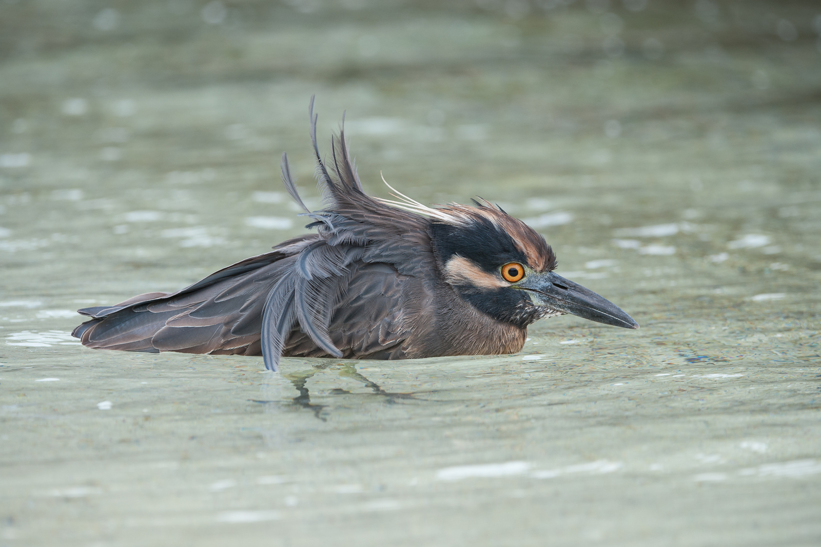 A yellow-crowned night heron stealthily moves through the shallow water off the coast of Genovesa Island in the Galapagos Islands. The heron was hunting for fish and being very patient in the process. Nikon D700 with Nikkor 200-400mm lens (at 330mm) ISO 400, f/5.6 at 1/640th of a second.