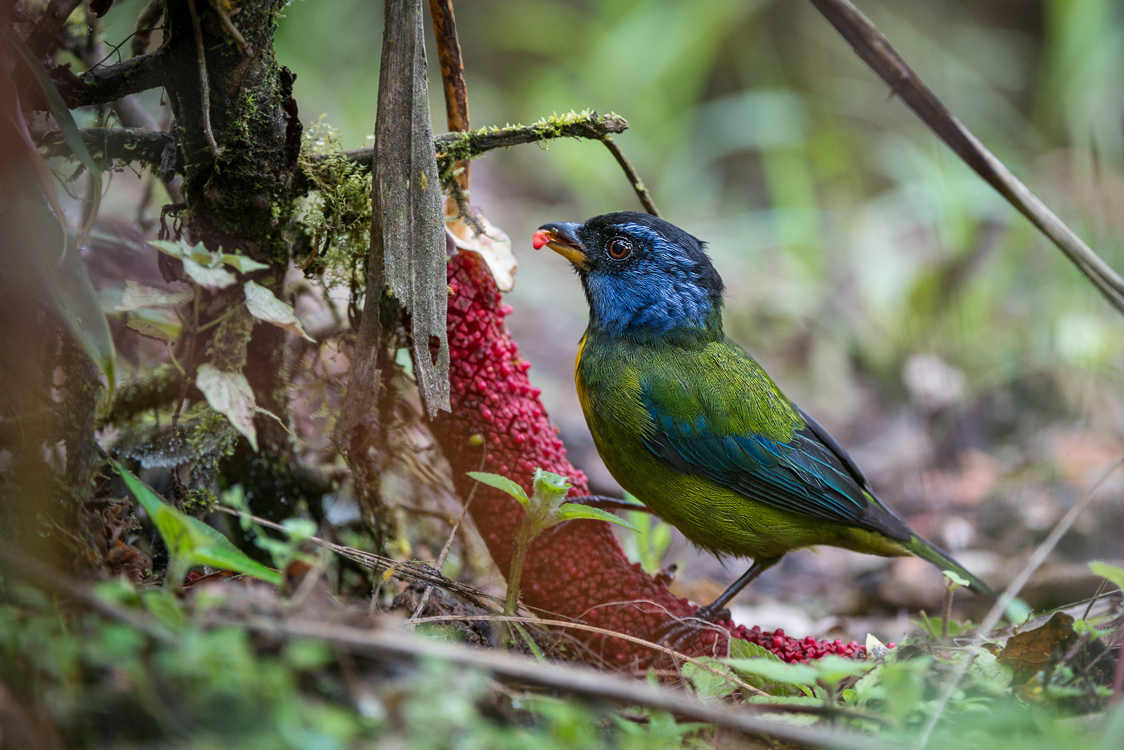 Always nice to run into motmots while in Central and South America. This particular motmot is of the rufous variety. He/she allowed a very close approach, as well as a side angle, enabling me to photograph all that great color in the feathers. This wasn’t too far from our lodge in the cloud forest of Ecuador. Nikon D700 with Nikkor 70-200mm lens (at 200mm) ISO 1600, f/2.8 at 1/160th of a second.