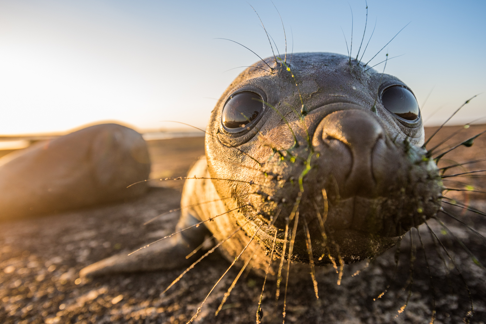 Sometimes the wildlife is as curious about me as I am about it. This baby southern elephant seal pressed its nose right up against my lens before resuming its morning nap. We made our acquaintance on Sea Lion Island in the Falkland Islands.
